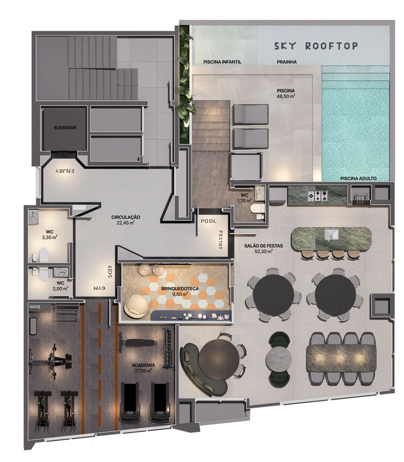 Controle de acesso inteligente às garagens, áreas de lazer e ao apartamento